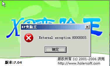 CC未修复前,出现"External exception 80000003"错误,在菜单上点击任何功能,都是这个错误,不能关闭程序。