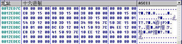 ▲pDebugEvent=0012ED7C数据窗口跟随,数据窗口一直保持在这里,到结束。▲