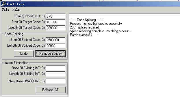 将以上参数填到ArmInline,附加PID,“Remoove Splices”,修补成功。