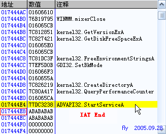 IAT的大小。向下滚动窗口,可以看到结束的地方。