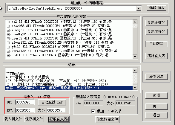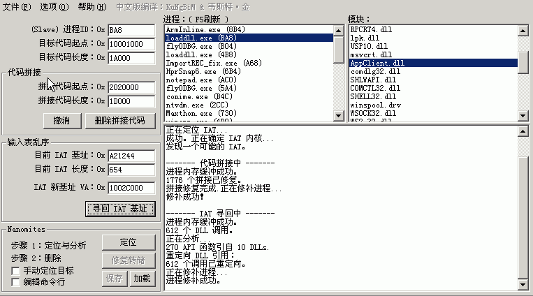 ----------------------------------------------------------------------------------------------------------- 注意:在ArmInline修复后,用LordPE转存、Import修复。必须同一次进行,不能用未ArmInline修复前或前次用LordPE转存的dumped.exe来用Import修复!