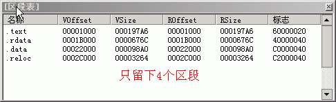 3、dumped_.dll文件优化前为11个区段。留下前面text、rdata、data、reloc四个区断,消除区段text1后面全部区段。