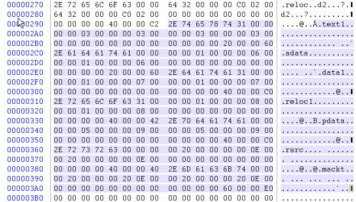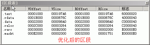 保存文件。 5、用LordPE打开WinHex修复的文件,从磁盘载入资源段rsrc区段,修改VSize=mackt-rsrc=E2000-30000=B2000。